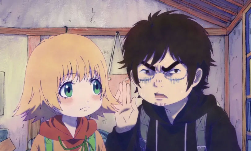 Dal punto di vista visivo, la direzione artistica è coerente con questa poetica: colori desaturati, toni freddi, ambienti urbani che sembrano appartenere a un Giappone fuori dal tempo. L’animazione non punta al realismo, ma alla suggestione. Gli sfondi a volte sembrano schizzi a matita, e questo rafforza l’idea di un mondo fragile, instabile, quasi disegnato dalla memoria. In certe inquadrature si percepisce un’intenzione pittorica, un desiderio di evocare più che mostrare.